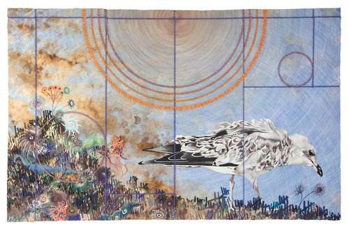 My practice is hybrid. Digital and analog. Moving between the two spaces, I layer pixels and ink and thread. Fluid. I spend time, touching the images over and over again. They reveal themselves slowly. They shift. Carefully observed nature mixes with imagination. What is. What could be. In drawing I leave a mark. Evidence that I am here. Evidence that here is here. It reassures me. The world emerges.